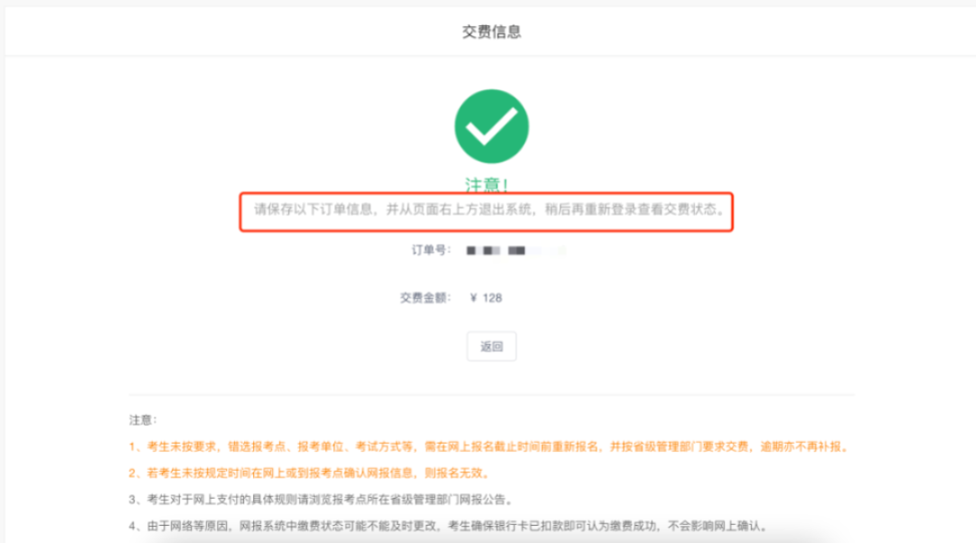 👀考生信息至此填写完毕,下一步“确认考生信息”,“确认”无误后会收到“操作成功”的提示,发现有误请及时返回或回到上一步修改。