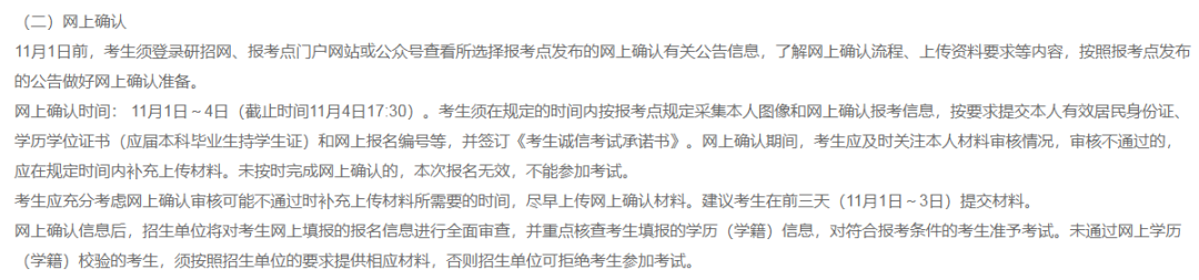 确认时间:10月30日至11月5日期间(具体时间以报考点网上确认公告为准)