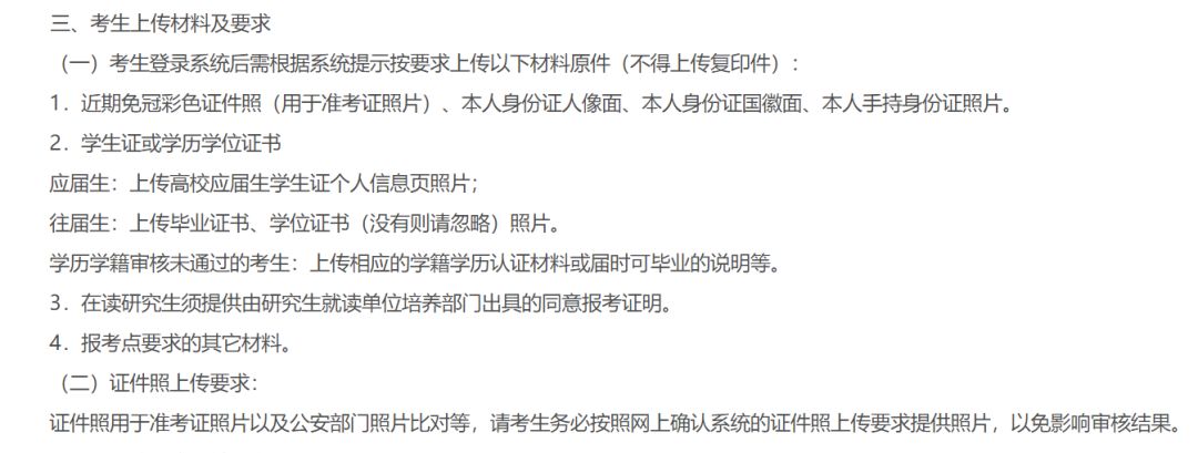所需材料:按报考点要求及时准确上传相关材料,完成确认工作。