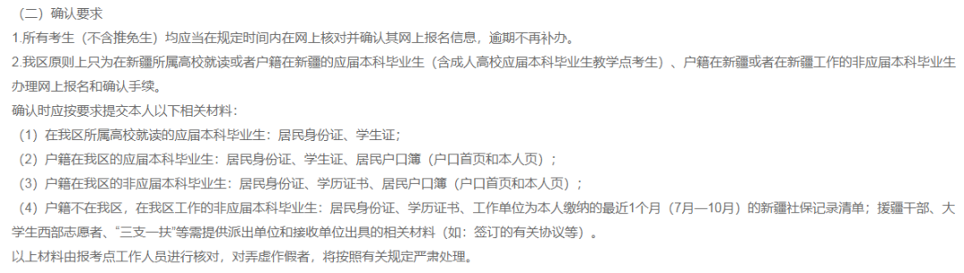 所需材料:所有考生均应按报考点的要求在规定时间内核对并确认其网报信息,逾期不再补办。