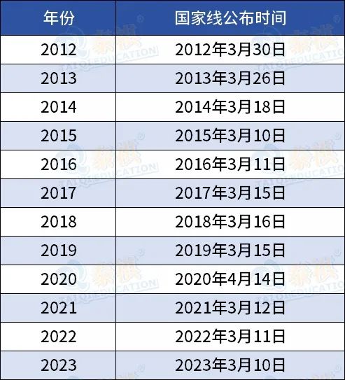 今天给大家整理了近十年国家线的公布时间,除2020年受疫情影响晚公布之外,国家线主要集中在3月中旬公布👇👇