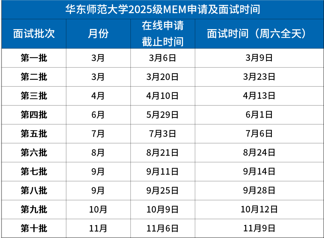 华东师范大学MEM项目近3年来,预审第一批从原来的4月,提早到了3月,今年3月甚至直接安排了2个批次,且在1月中旬就发布了预审通知。(如图所示☟,从上往下依次是华师大备考23/24/25年的预审批次时间)