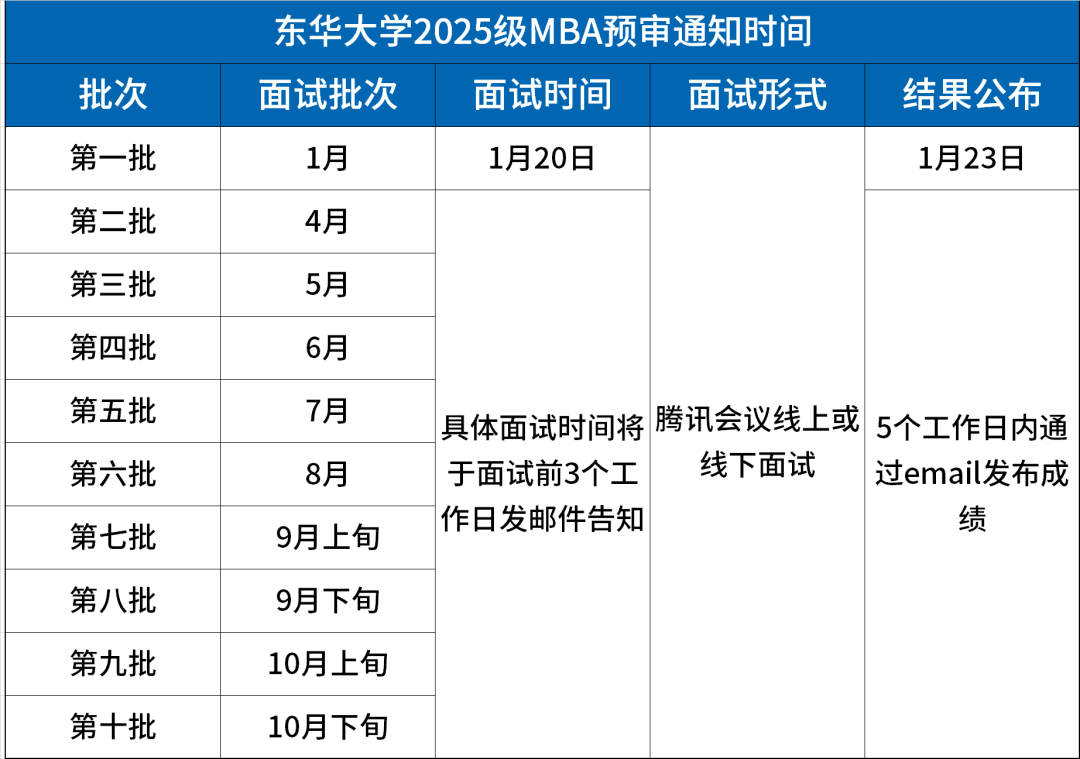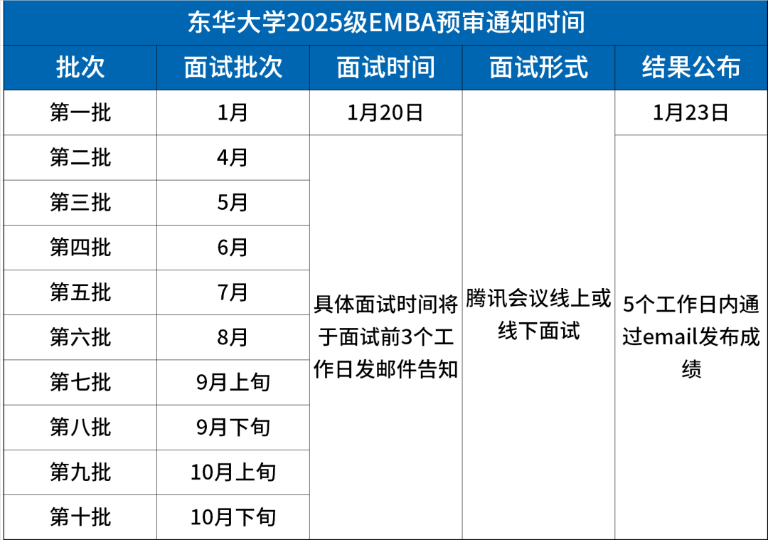 比如,东华大学MBA/EMBA/MEM项目今年第一批提前面试就直接安排在了1月底。