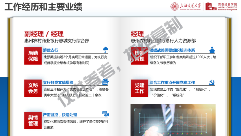 这个时候你的PPT个人介绍就成为了“一面定生死”的重要环节!在短短的几分钟之内,你需要结合幻灯片,将你个人的教育背景、职业经历、公司情况、管理职能、重大业绩、职业规划、报考动机等以图文并茂、绘声绘色的状态展示出来。