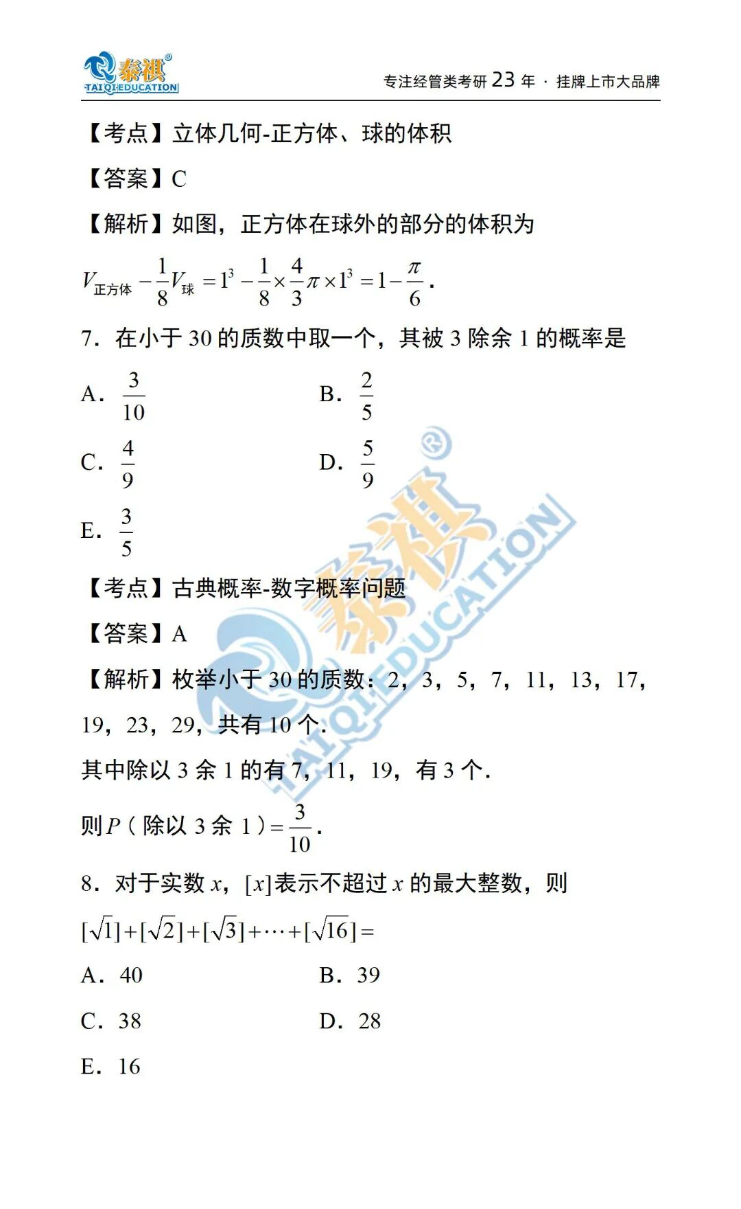 泰祺教育-数学教研组 解析