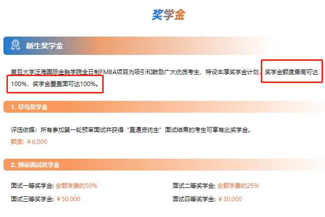 想要报考复旦大学管理学院MBA的注意啦,2023级考生管理类联考成绩名列第一第二名即可获得100%学费的奖学金!