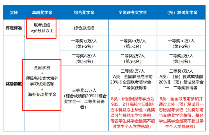 除此之外,还有一个“杰出人才”单项奖,奖金50万,超出最高学费8.2万,而且一共有8个人可以获得,满足条件的同学千万不要错过啦!