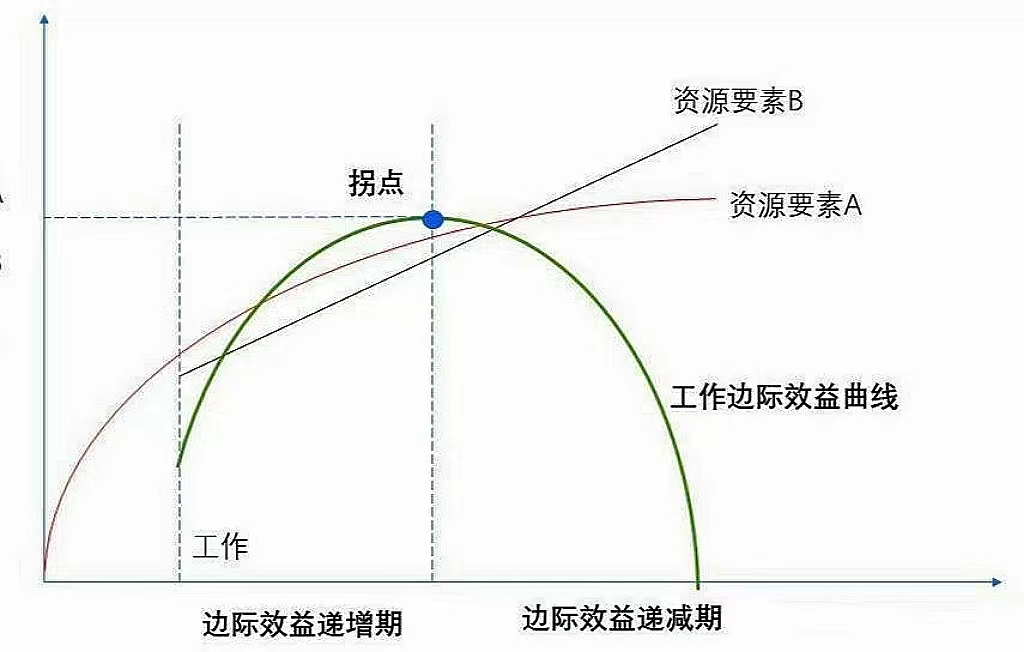 那么当你的第二类要素超过你的第一类要素时,你的工作成就就进入了边际效应递减期,进步会越来越少。