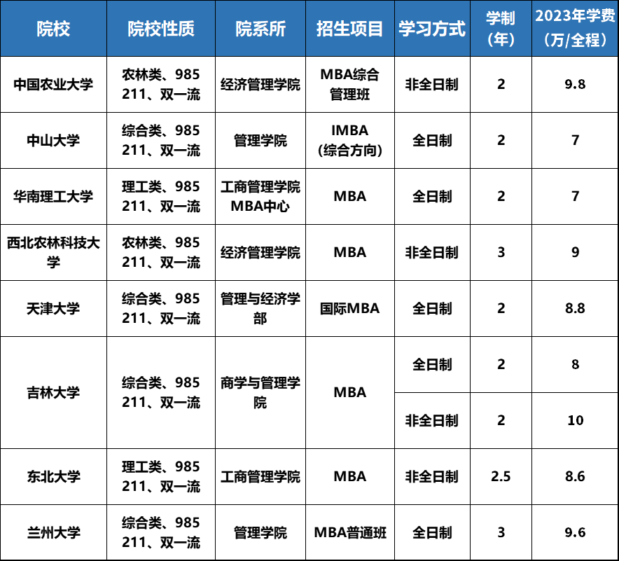 如果收入比较有限,或者车贷房贷比较多、家庭支出大,也想通过MBA提升学历的话,就可以抛开1.5倍年收入原则,在学费10万以下的学校里挑更适配自己职业规划,各方面性价比更高的学校,我们也为大家整理了全国MBA学费最低的院校汇总,可以点击查看:省钱!各省市学费最低MBA院校大盘点!