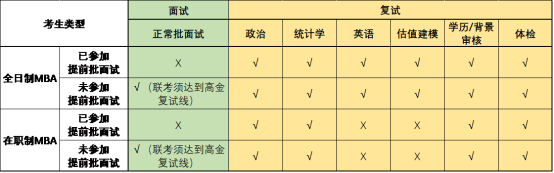 ※不安排正常复试,考生在参加MBA联考后还须参加清华经管学院组织的MBA入学政治考试和英语听力测试(清华全球MBA项目考生免试英语听力测试)