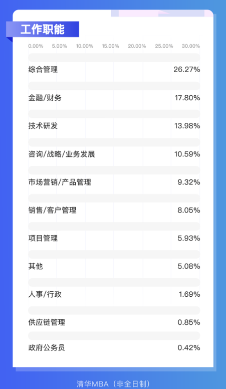 MBA的课程涉及企业管理的方方面面,从院校公布的新生岗位职能来看,无论你是管理岗、还是财务、市场营销、咨询、技术岗、行政人事等都是可以报考MBA的。