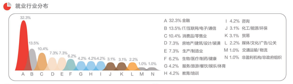 北大光华管理学院2020届全日制MBA就业报告显示,毕业生去往金融领域的人数占32.3%,约三分之一学生选择了金融业。