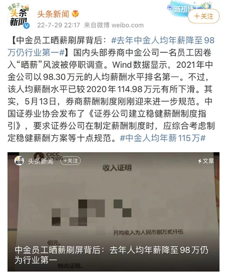 近日,一则“90后券商交易员月入超8万”的截图在网上引发热议。很多人感慨,知道金融行业薪资高,没想到这么高!还有些人说,月入8万在中金只是普通水平。更有数据显示,中金公司2020年人均年薪115万,高管最高年薪超800万!