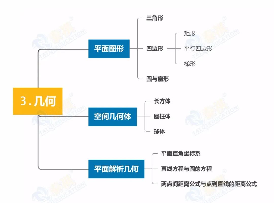 这些内容,相信大家都不陌生,因为都是我们在初中、高中,甚至是小学学过的内容,不考高数,主要考查初等数学的知识点。