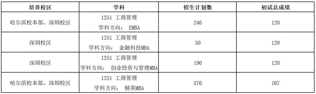 2.复试分数线低:2023年哈工大金融科技MBA和创业投资与管理MBA的复试分数线仅120分。2023年精英MBA复试分数线为167分。