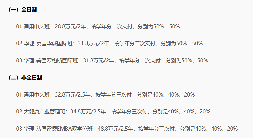 学费:全日制总学费30.8万,非全日制总学费33.8万