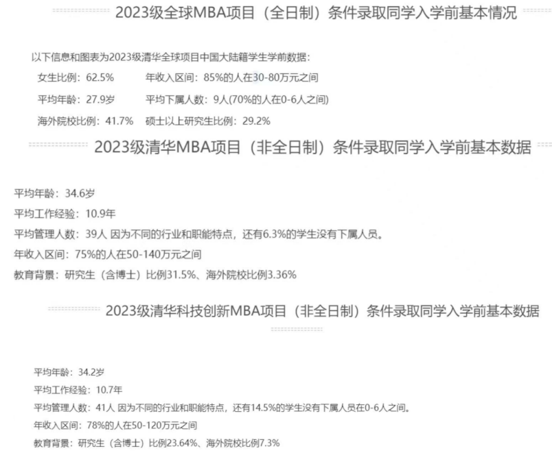 ☝ 2023级清华大学MBA生源数据