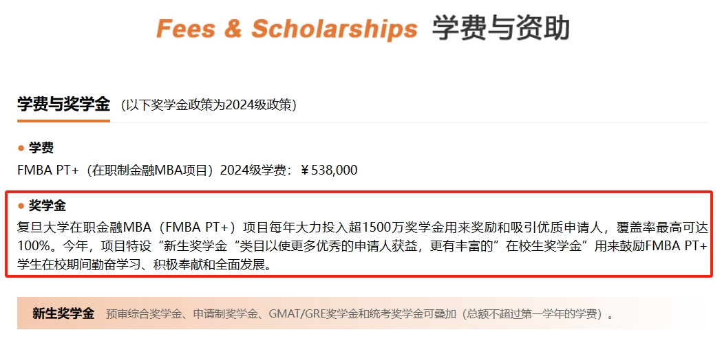 全日制和非全日制学生均可享受,但部分奖学金金额有所不同,需要具体查看院校的奖学金政策,参考2024学费,在职金融MBA最高可获得53.8万奖学金。