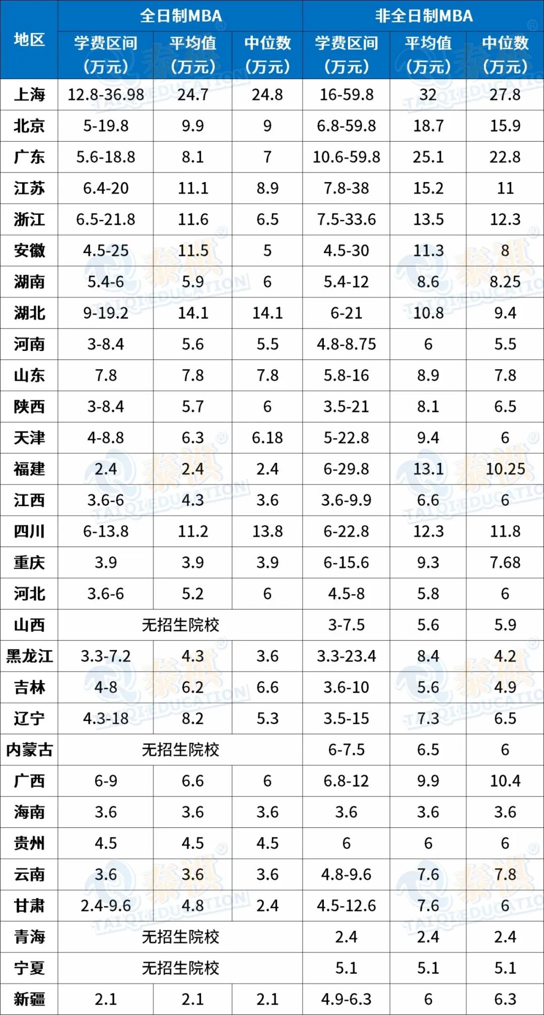 我们整理了全国大部分省份2024年MBA学费情况表,包括各地MBA院校的学费区间,学费平均值和学费中位数,可以供同学们直观感受一下各地的MBA学费情况。