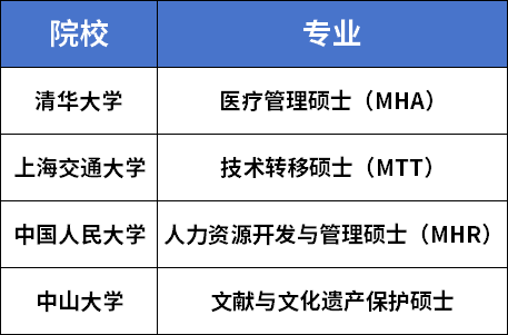 研招网24年硕士专业目录更新了,其中管理类专硕新增了4个专业,分别是:医疗管理硕士(MHA)、技术转移硕士(MTT)、人力资源开发与管理硕士(MHR)、文献与文化遗产保护硕士。