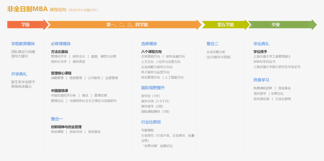 同时,院校会根据MBA具体的方向开设相应的选修课程,满足不同行业人群的需求。我们之前专门针对MBA的课程体系做了一篇推文说明 ↓ ↓