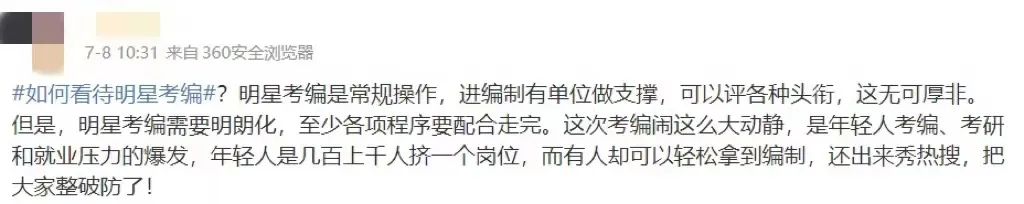 抛开事情本身,近几年确实有越来越多的明星进入体制内,从去年的刘昊然,到今年的易烊千玺等人。许多人发出感慨:明星也要考编,难道宇宙的尽头真是编制吗?