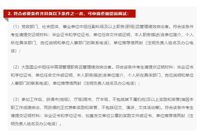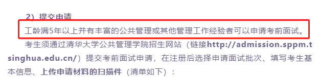 👉清华大学要求工龄满5年以上并有丰富的公共管理或其他管理工作经验者可以申请提前面试。