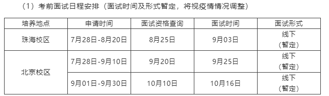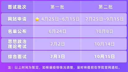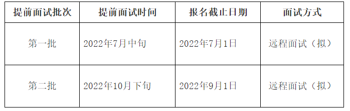 院校于9月30日左右公布“提前面试”名单,10月中旬组织提前面试。