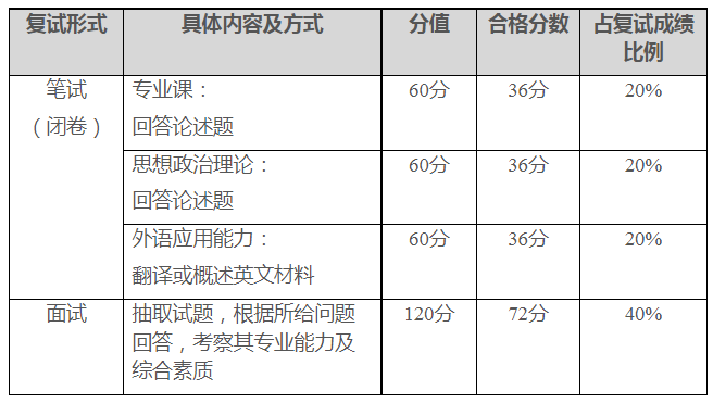 复试着重考察考生的综合素质与专业知识运用,复试满分值为300分。复试考核形式及分值如下: