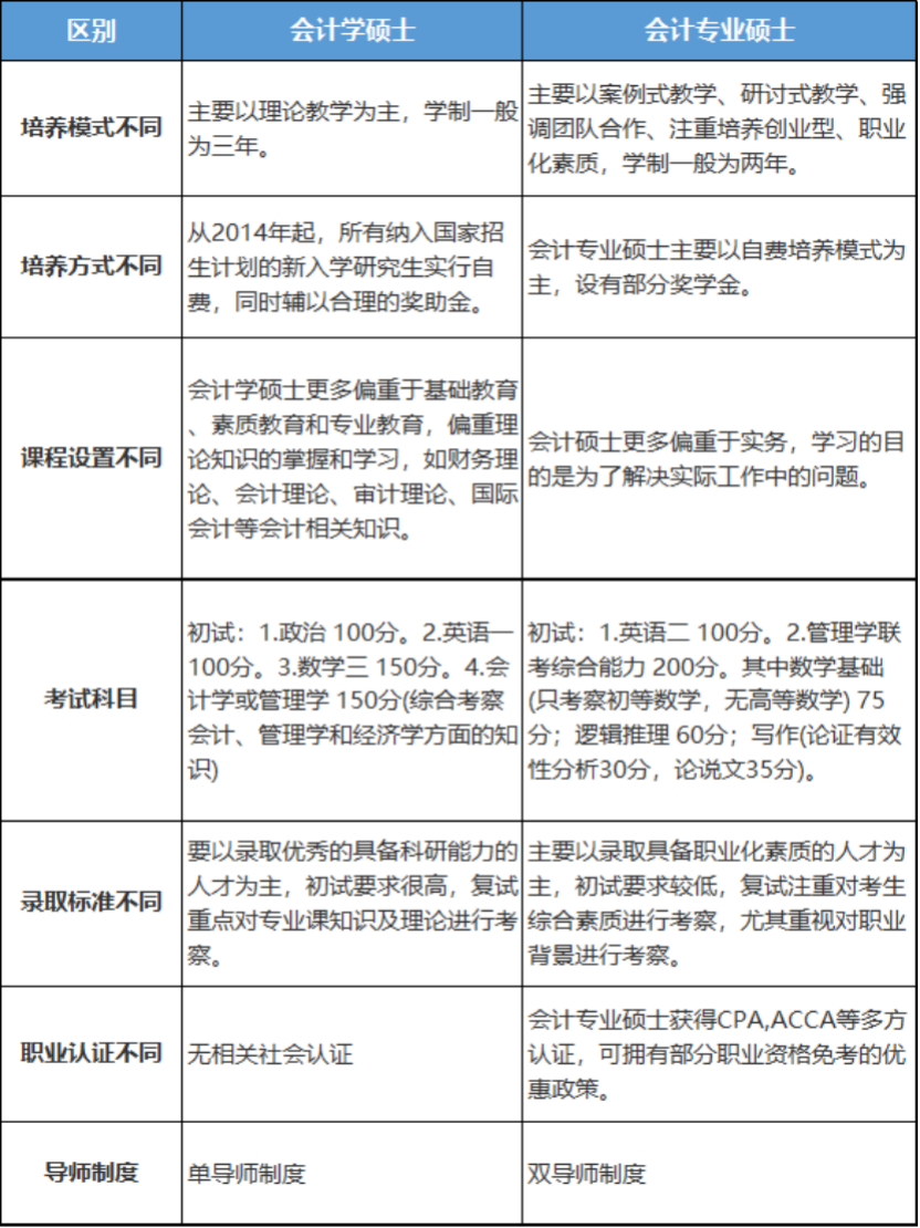 同会计学硕相比,会计专硕更看重实践能力,其招生办法、教育内容、培养模式、质量标准等更突出职业要求,更注重学术性与职业性的紧密结合,注重于实践。
