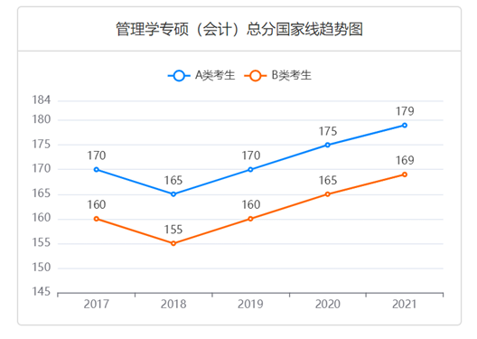 MPAcc初试总分300分,历年国家线都不超过180分。过国家线对应届考生来说比较容易,但是大多数MPAcc院校的分数线会比国家线高。