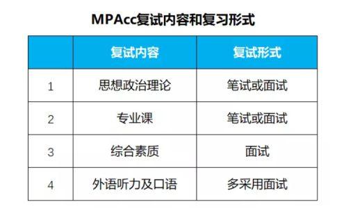 MPAcc(会计专业硕士)的复试由思想政治、专业课、综合素质、外语听力及口语四个部分构成。对于以同等学力身份报考的考生,复试还需要加试两门专业课。