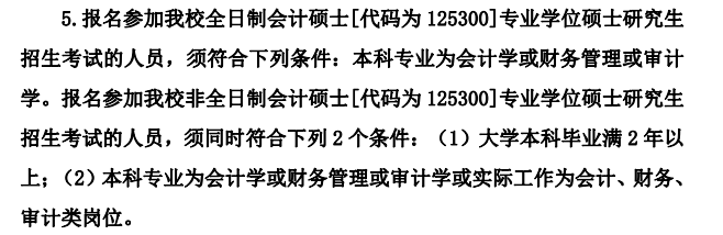 总体来说,除了南开大学全日制MPAcc和非全日制MPAcc均不接受应届生报考外,大部分都是非全日制MPAcc会限制本科应届生报考。所以有意向报考非全日制MPAcc的考生,建议在报名前确认自己是否符合院校的报考要求。