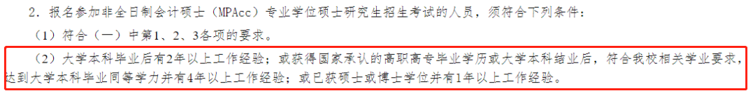 (二)或具有硕士、博士学位,到入学时有三年以上工作经验