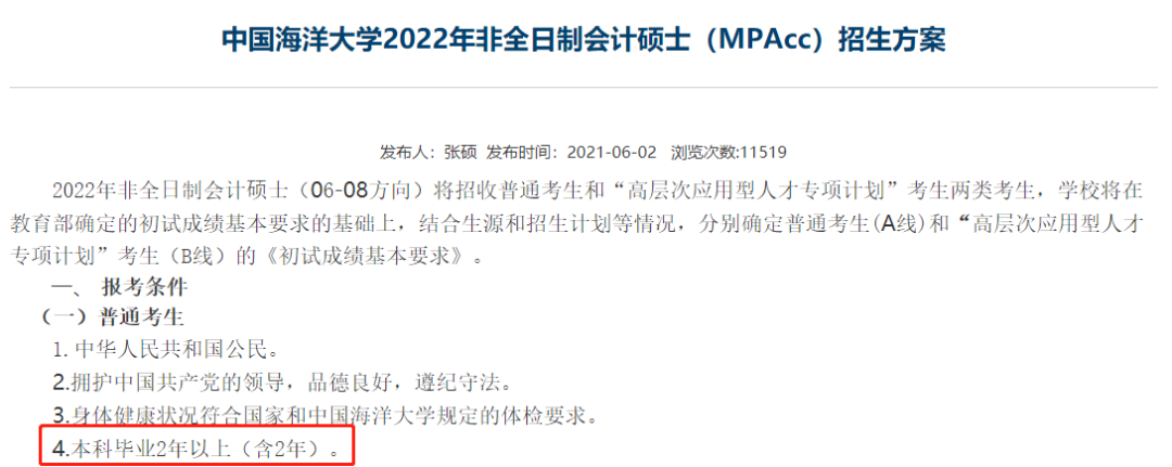 今天我们就来一一盘点那些2022年不接受本科应届生报考的MPAcc院校!