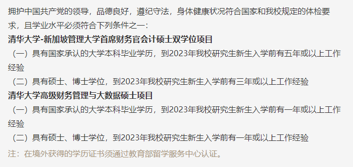 清华大学MPAcc共开设两个项目(非全日制),均不接受应届生报考。