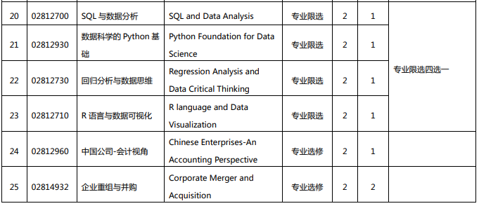 SQL 与数据分析、数据科学的 Python 基础、回归分析与数据思维、语言与数据可视化、中国公司-会计视角、企业重组与并购、资本市场实证研究等。