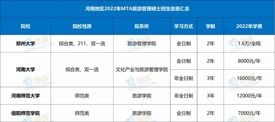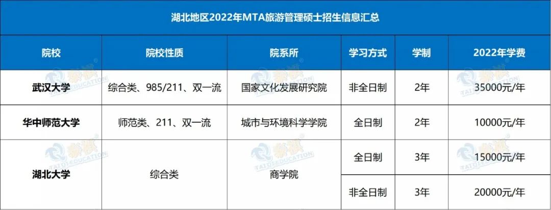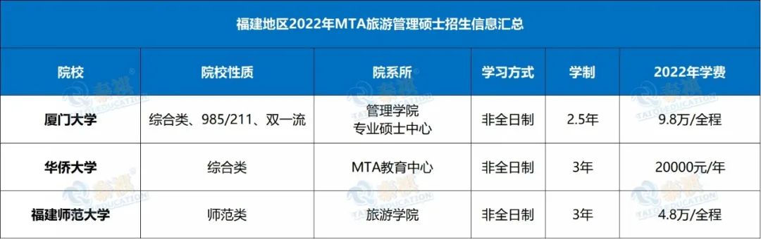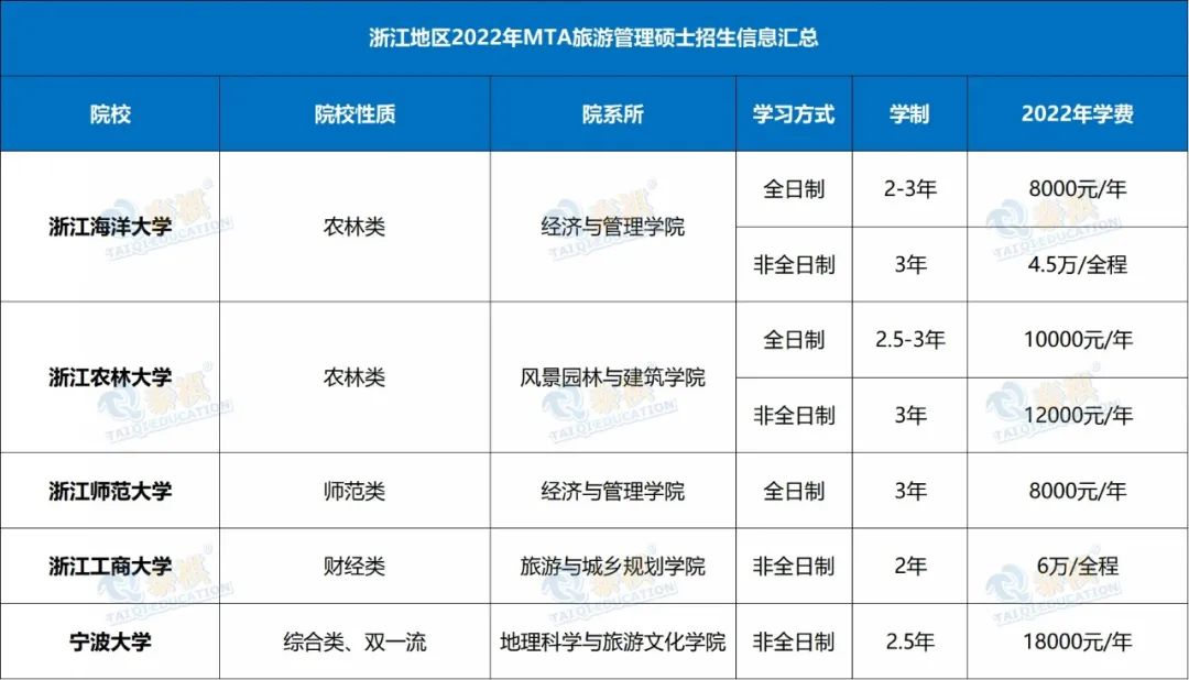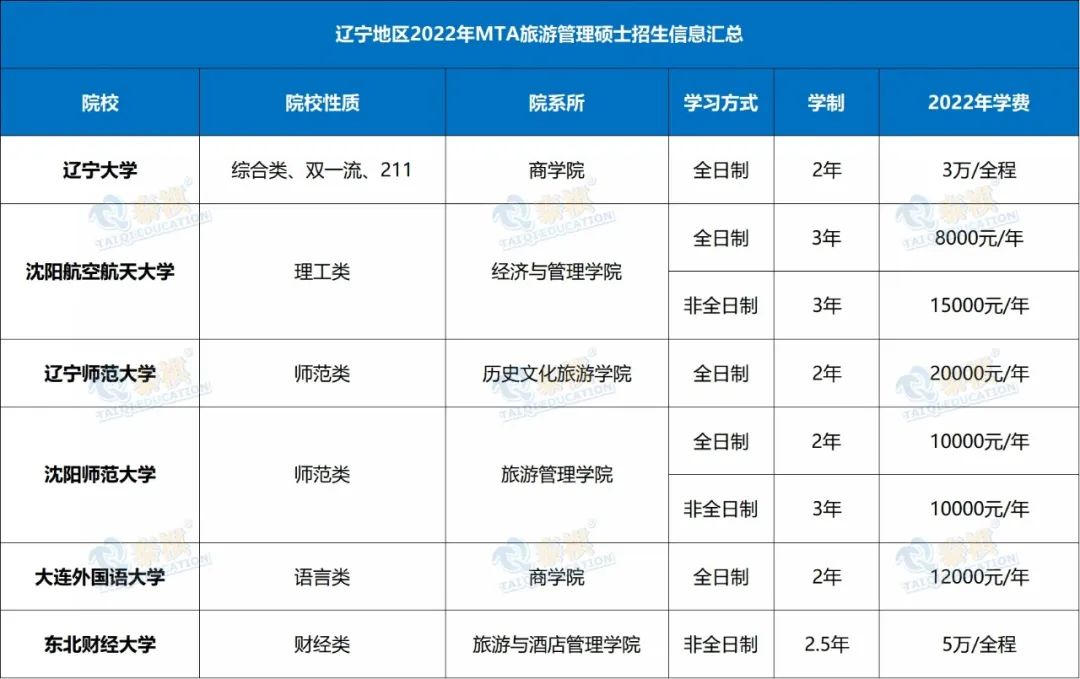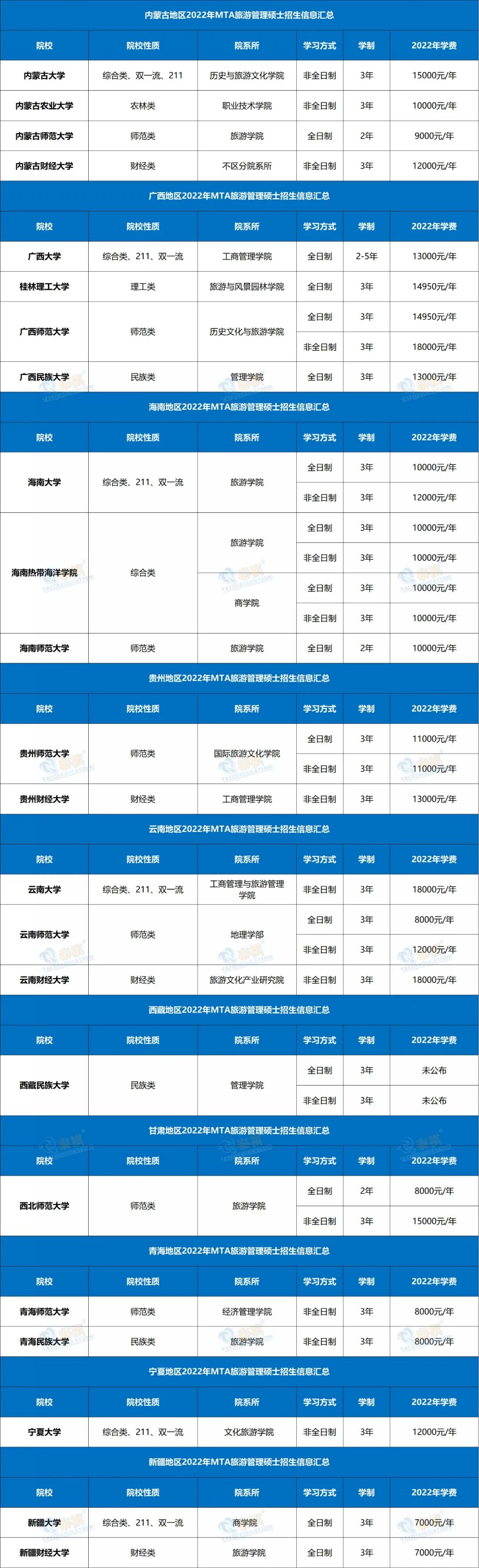 本期汇总了全国MTA旅游管理硕士招生院校2022年学费学制等信息,希望给到大家择校备考参考。