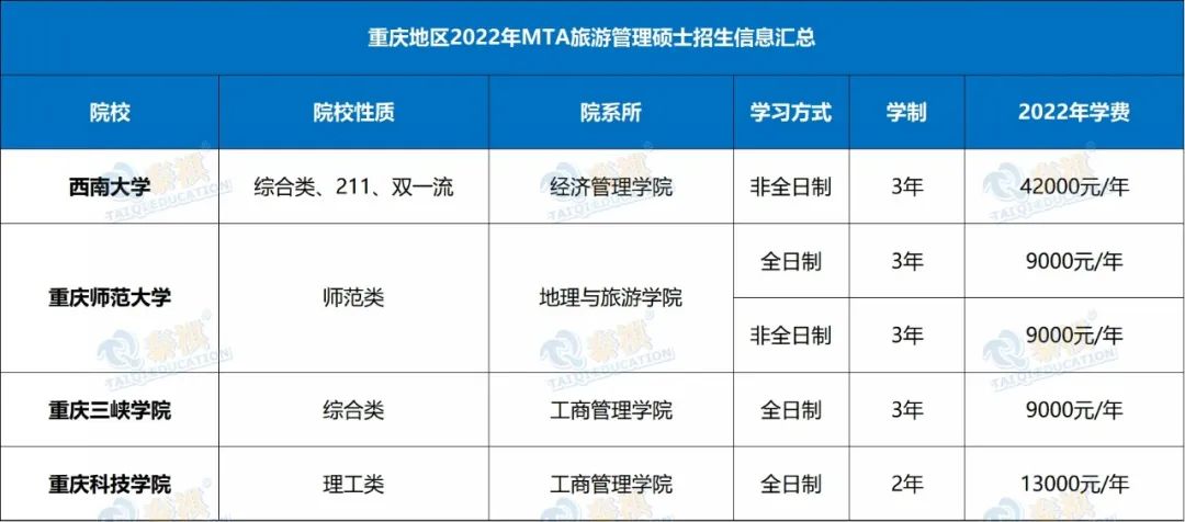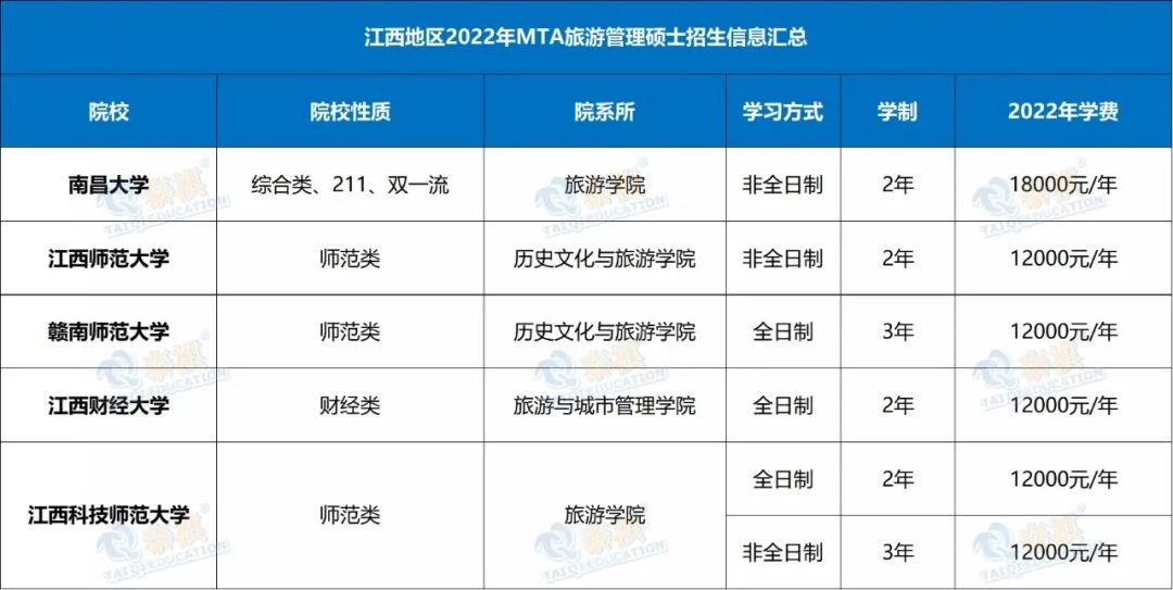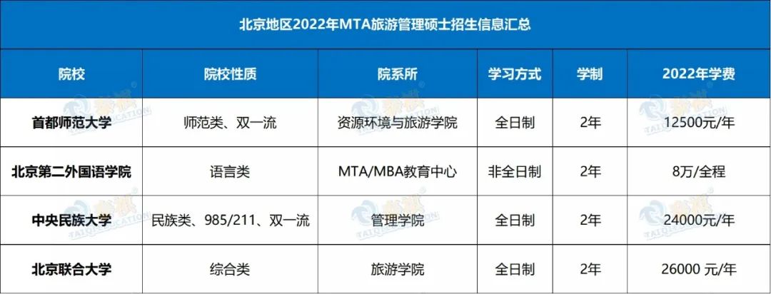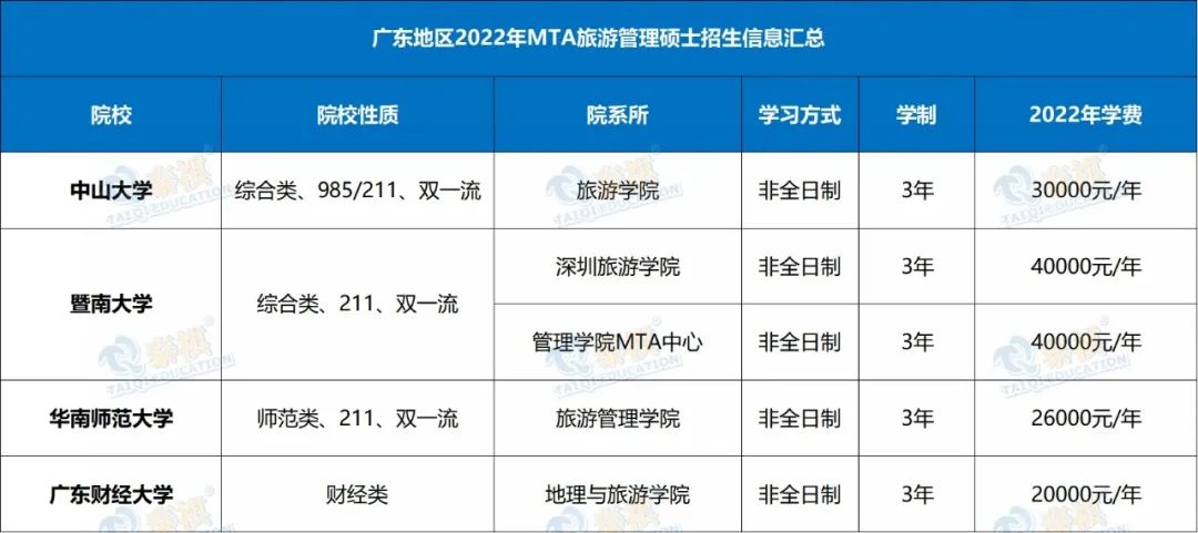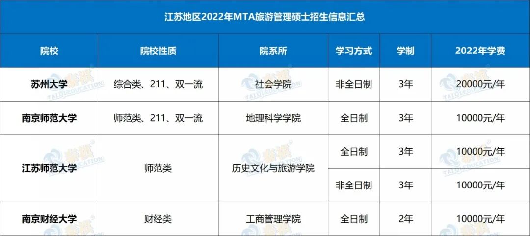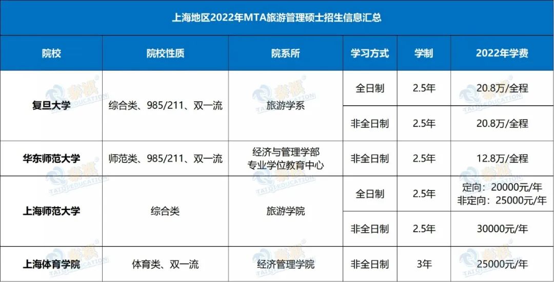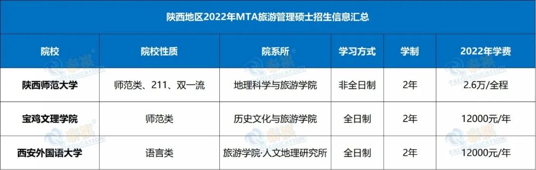 本期汇总了全国MTA旅游管理硕士招生院校2022年学费学制等信息,希望给到大家择校备考参考。