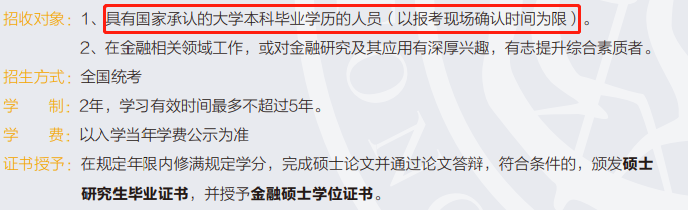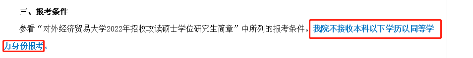① 对外经济贸易大学金融硕士:不接收本科以下学历以同等学历报考