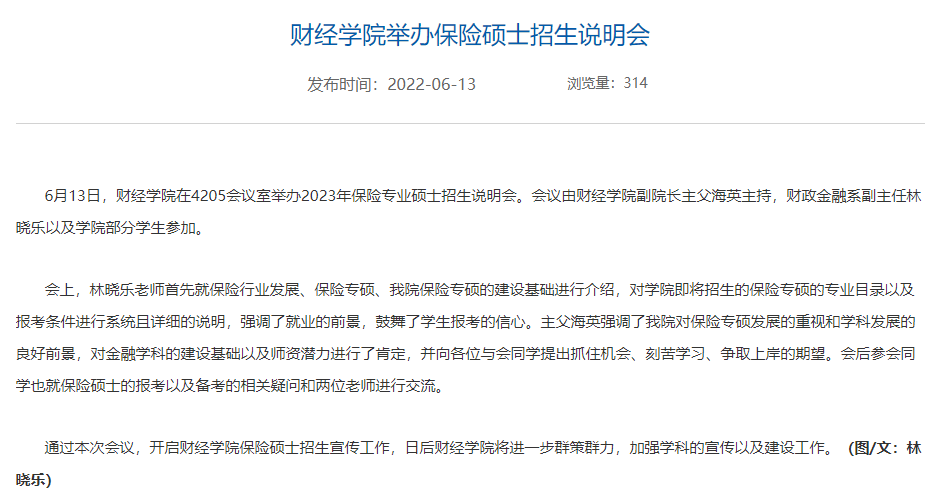 初试科目:101思想政治理论、396经济类综合能力、204英语(二)、435保险基础专业