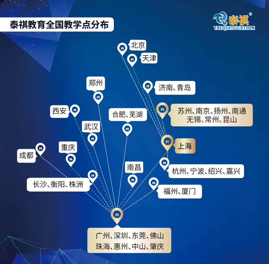 我有一个大家庭,全国近40个中心城市都有我的兄弟姐妹(线下教学点),上海、江苏、广东、安徽、湖南、湖北、浙江、山东、北京、福建等地的小伙伴们,欢迎大家和我线下“抱团”。