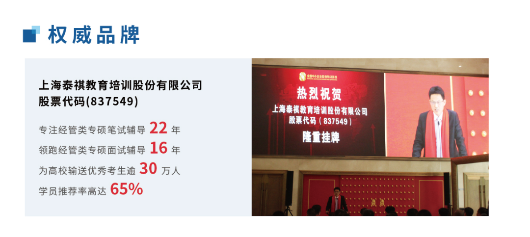 2016年5月,我在新三板挂牌上市,得到社会各届的认可。如今已经发展成为了国内最具影响力的经管类专业硕士考研辅导机构,累积培训学员数十万+人次。