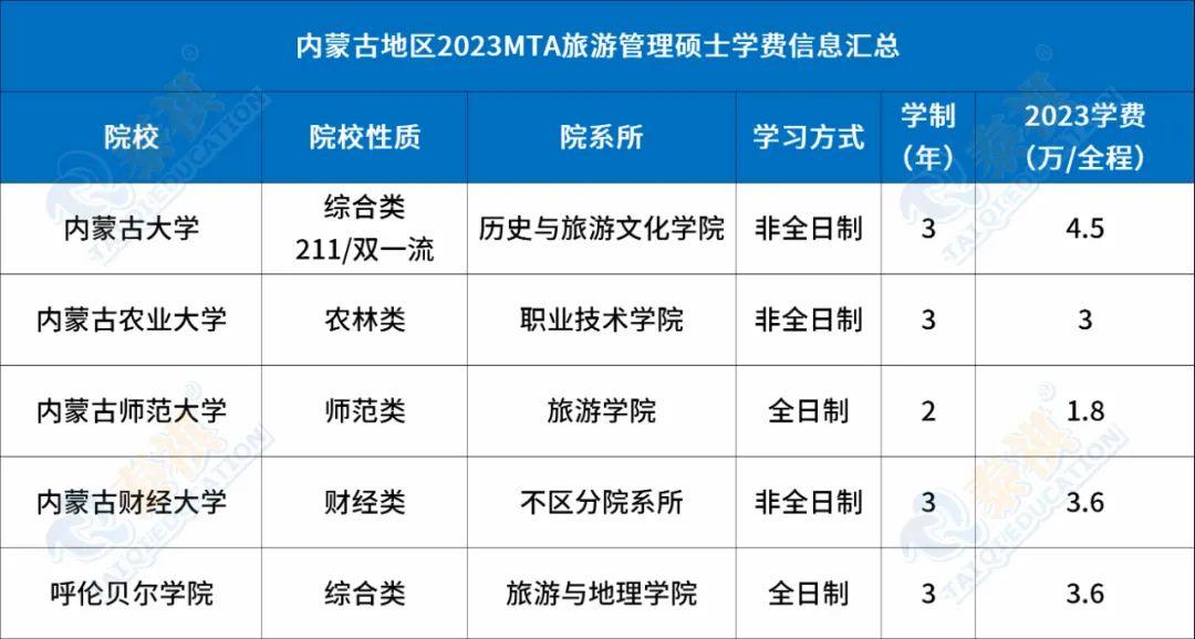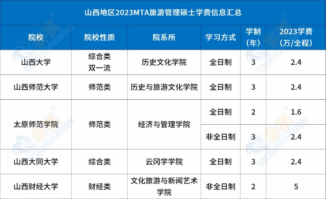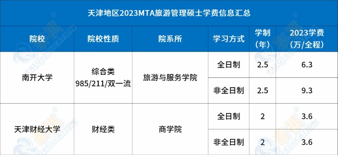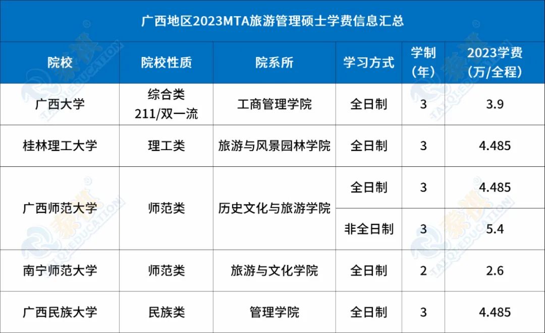 本期汇总了全国MTA旅游管理硕士招生院校2023年学费、学制等信息,希望能给大家择校备考作参考,快快收藏吧!