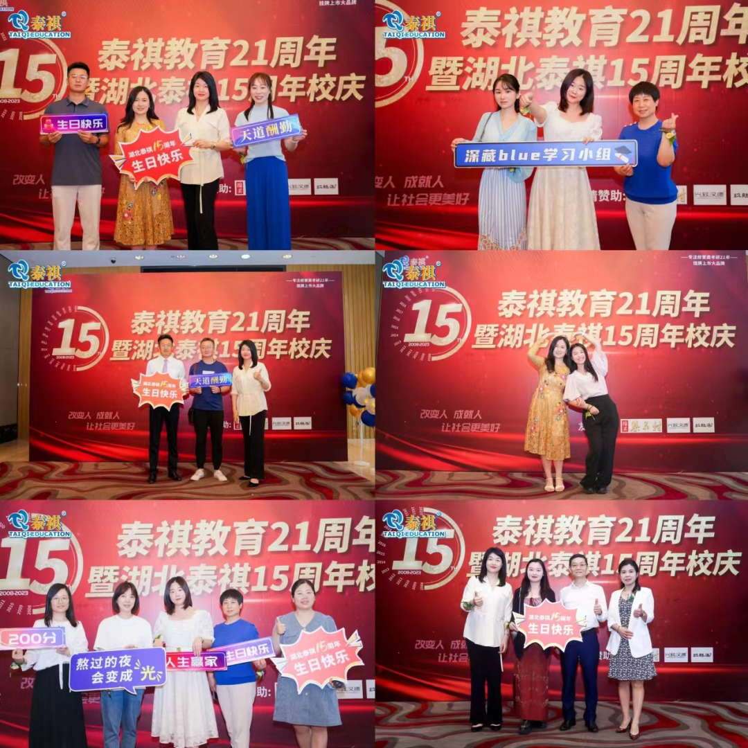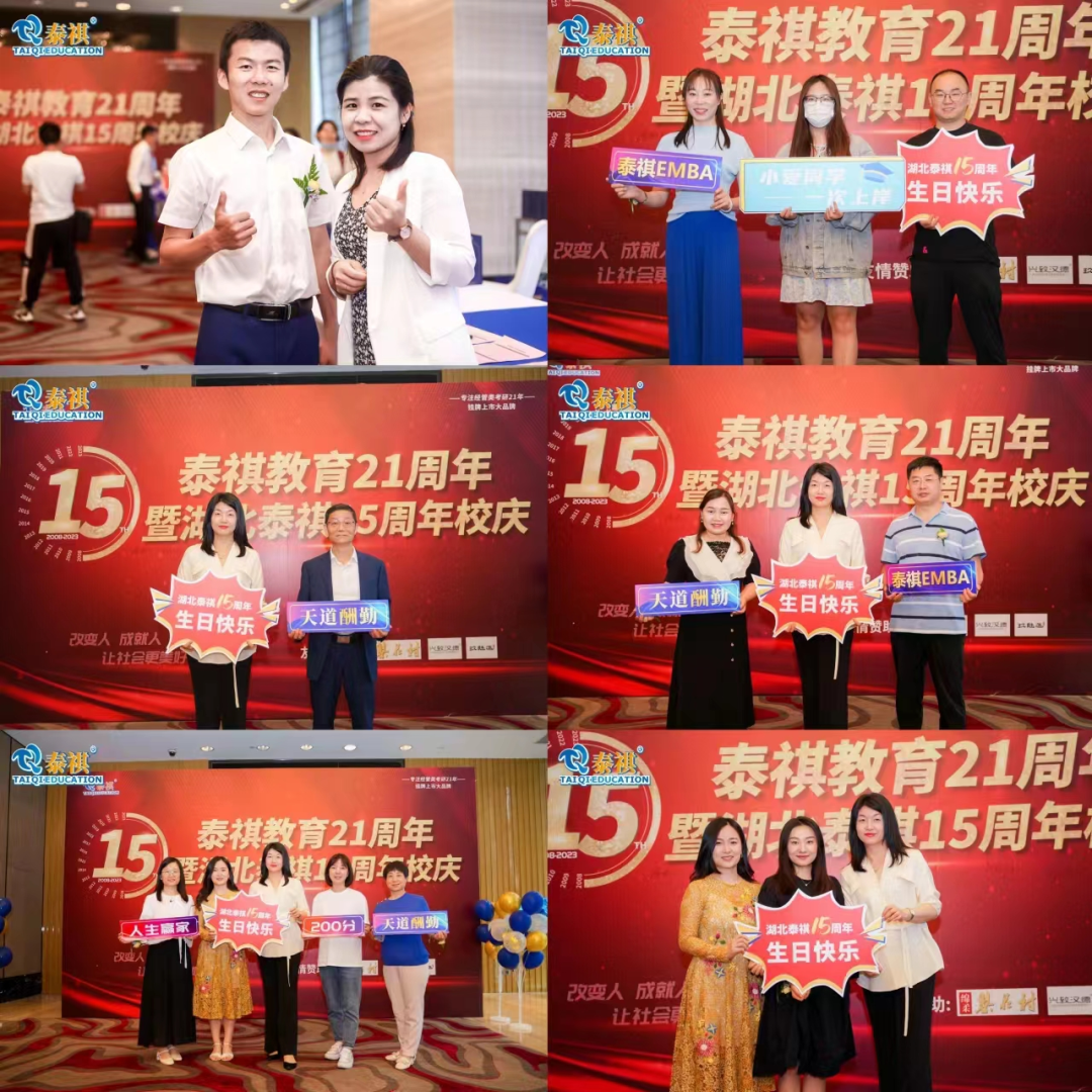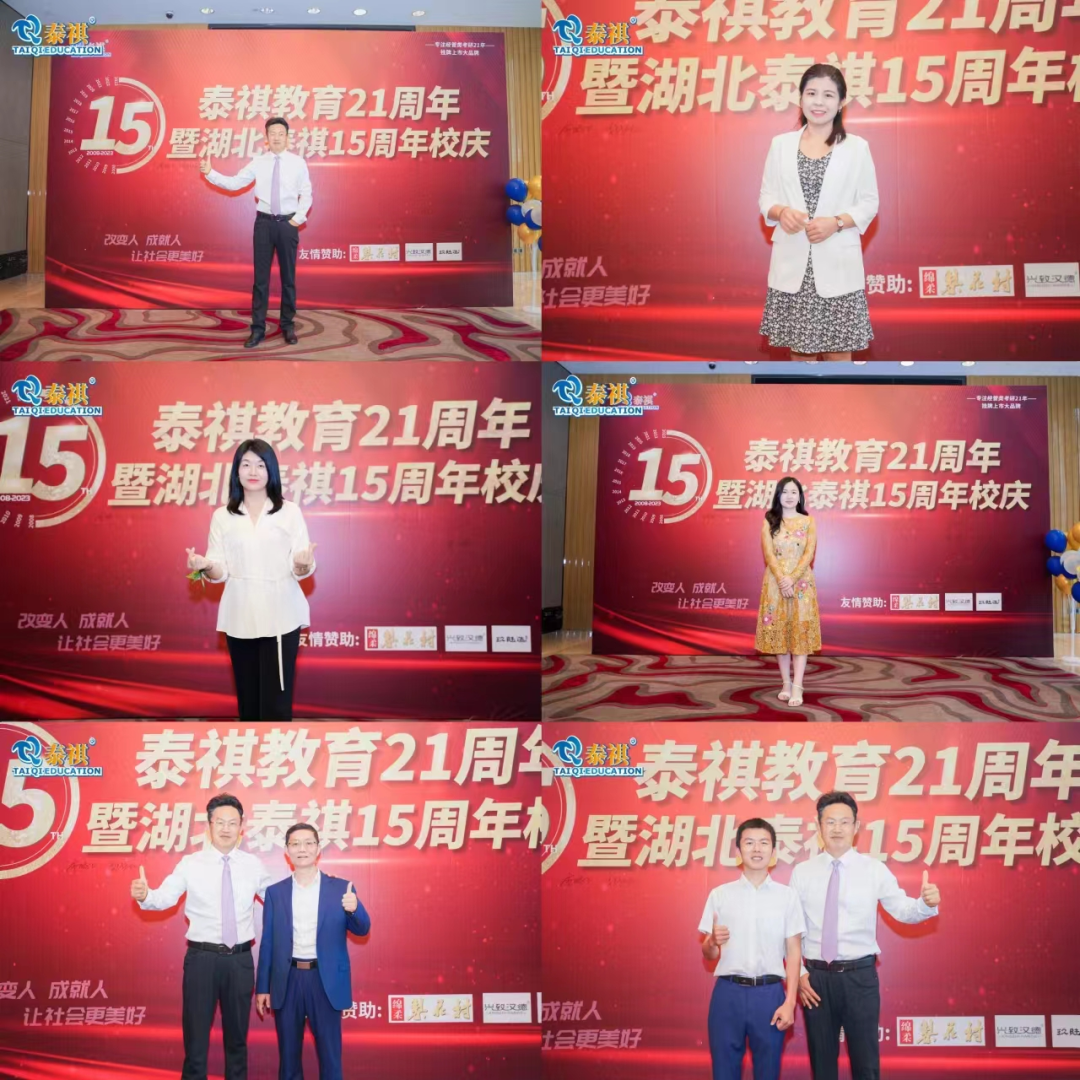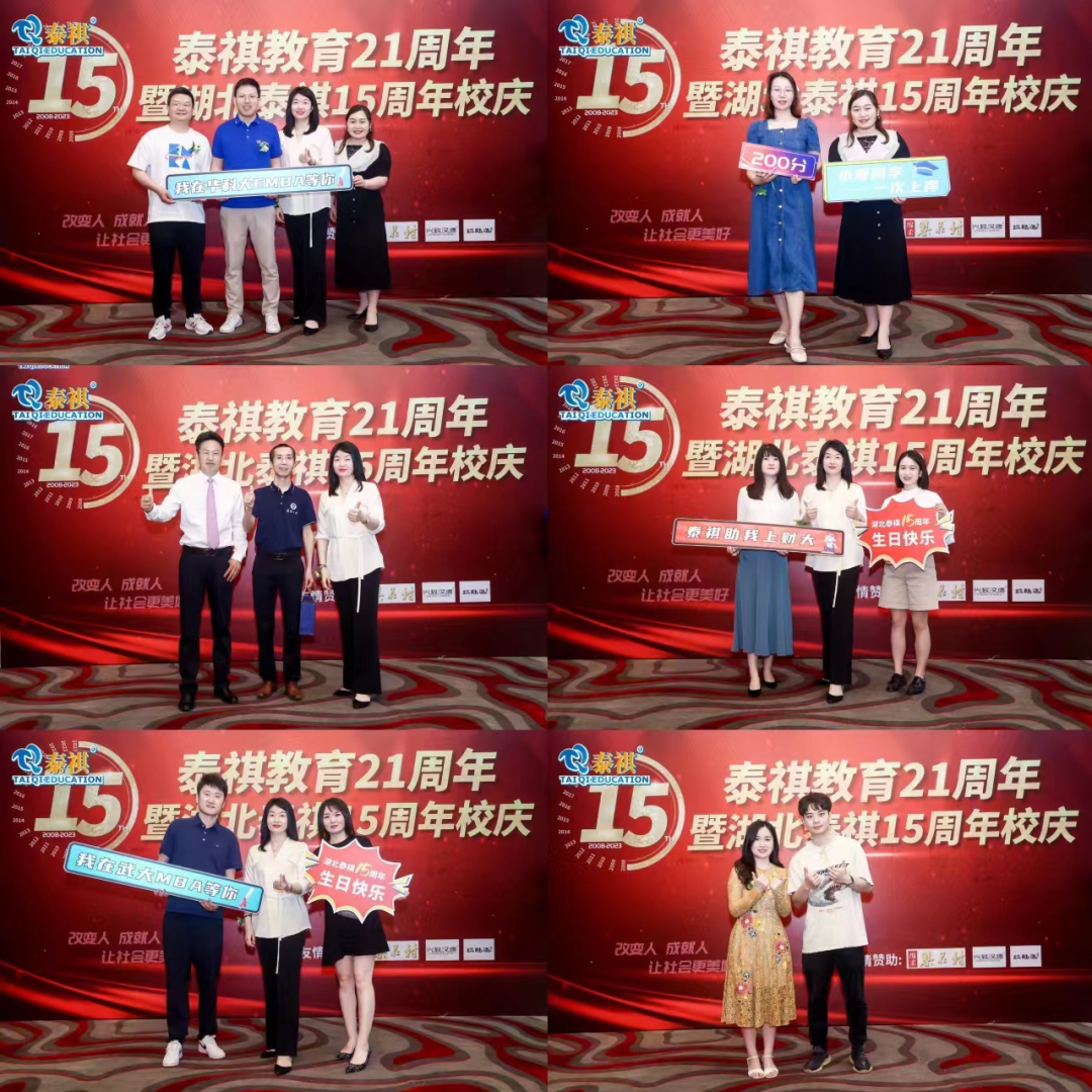 2023年5月20日,泰祺教育21周年暨湖北泰祺15周年校庆在万达嘉华酒店隆重举行。感谢各位校友百忙之中齐聚于此,见证湖北泰祺筑梦十五载的喜悦,再叙师生同窗情谊,共同展望美好未来。