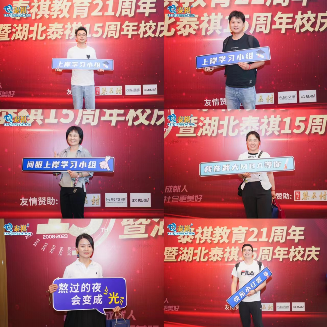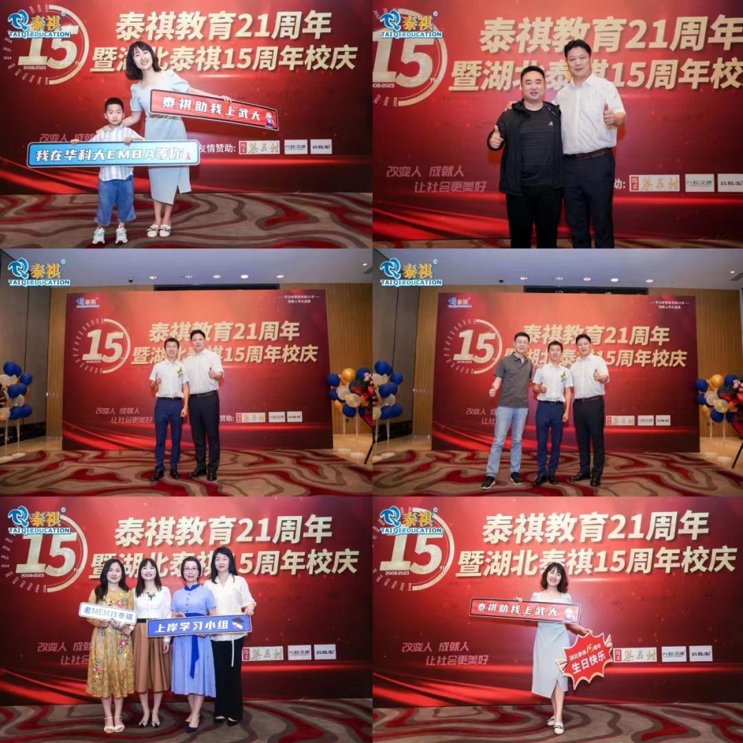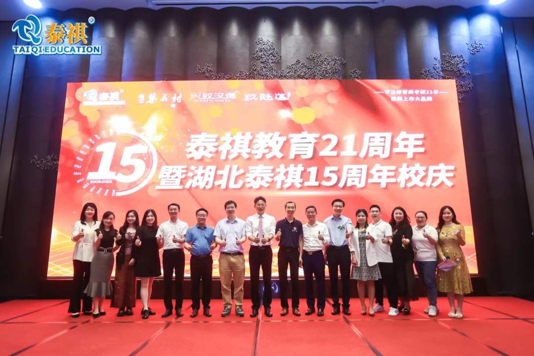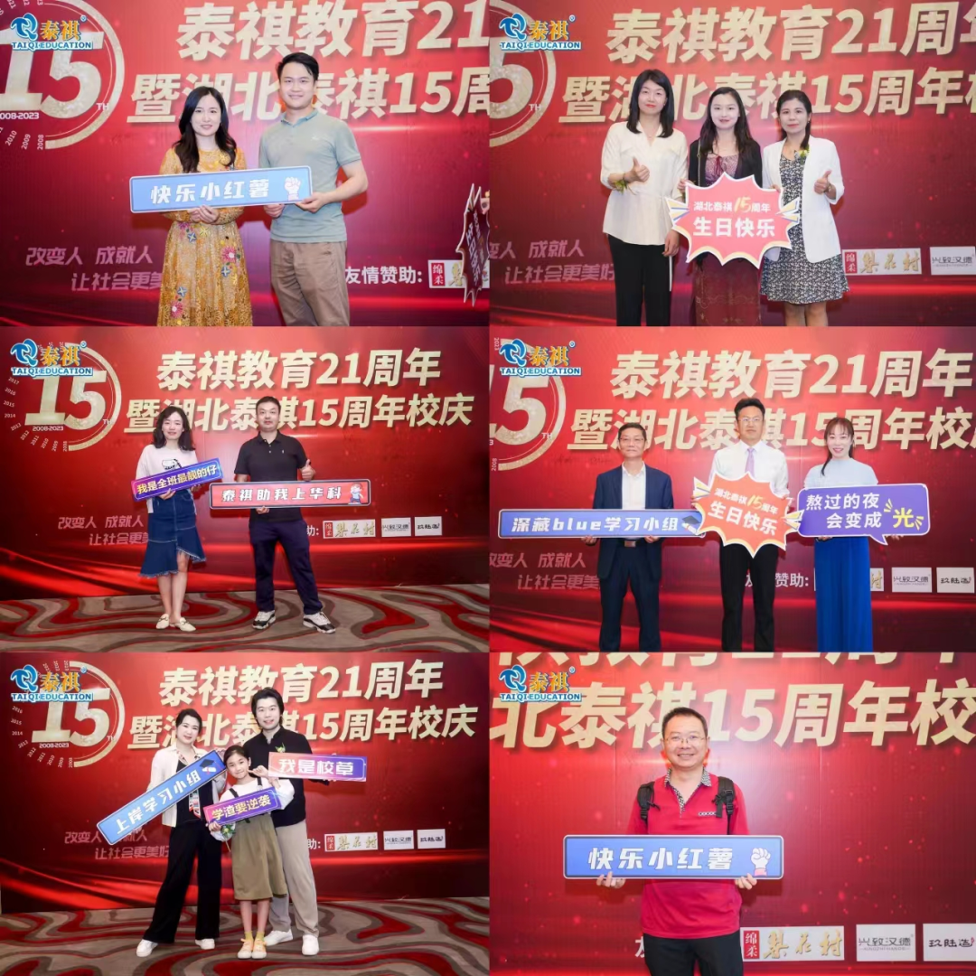 2023年5月20日,泰祺教育21周年暨湖北泰祺15周年校庆在万达嘉华酒店隆重举行。感谢各位校友百忙之中齐聚于此,见证湖北泰祺筑梦十五载的喜悦,再叙师生同窗情谊,共同展望美好未来。