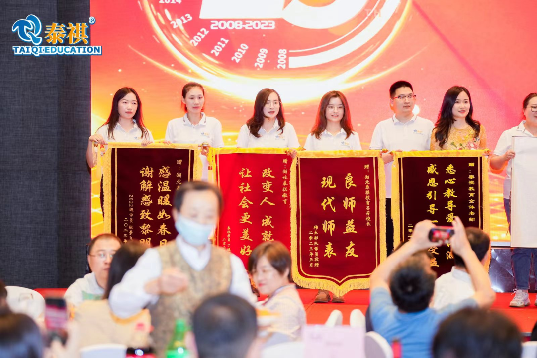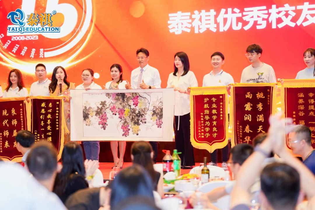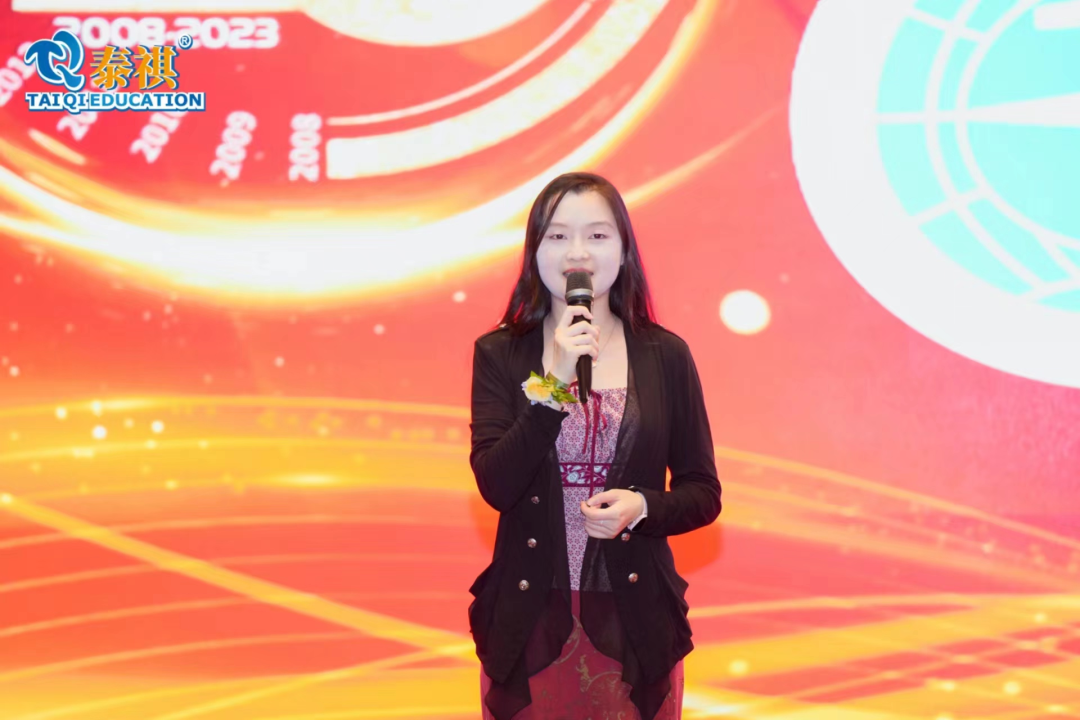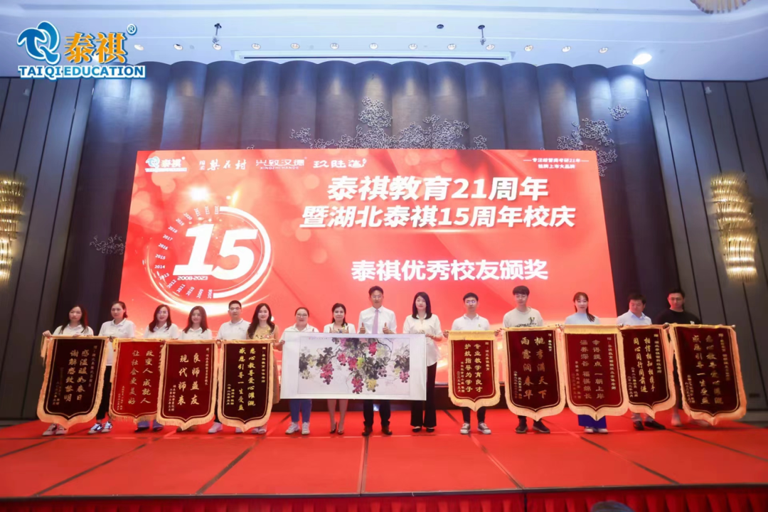 历届校友齐聚而来,共同为湖北泰祺庆祝,在这里,我想对在座的嘉宾表达两个感谢,感谢所有的高校老师对我们的一路支持,在很多个周末穿梭在泰祺的课堂中为同学们解读最新的院校政策,从我们这里接过接力棒,带领大家开启新的学习征程。感谢所有校友,15年的成长历程离不开你们的支持与鼓励,也让我们在时间的长轮中,不断完善更好的泰祺,做到改变人,成就人,让社会更美好。