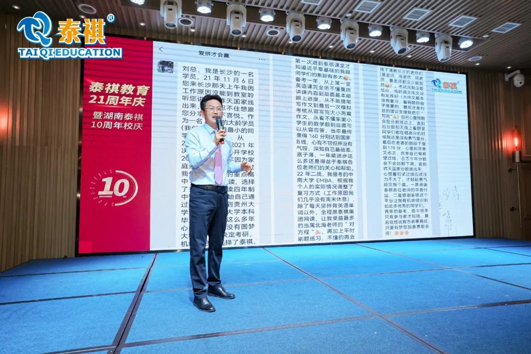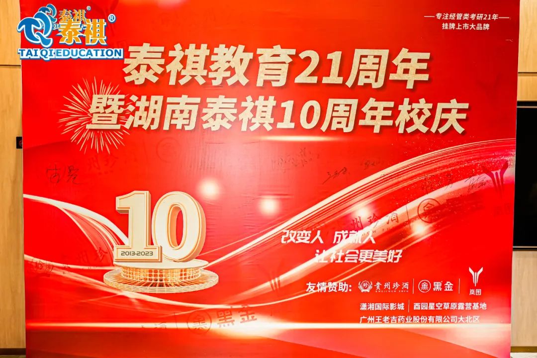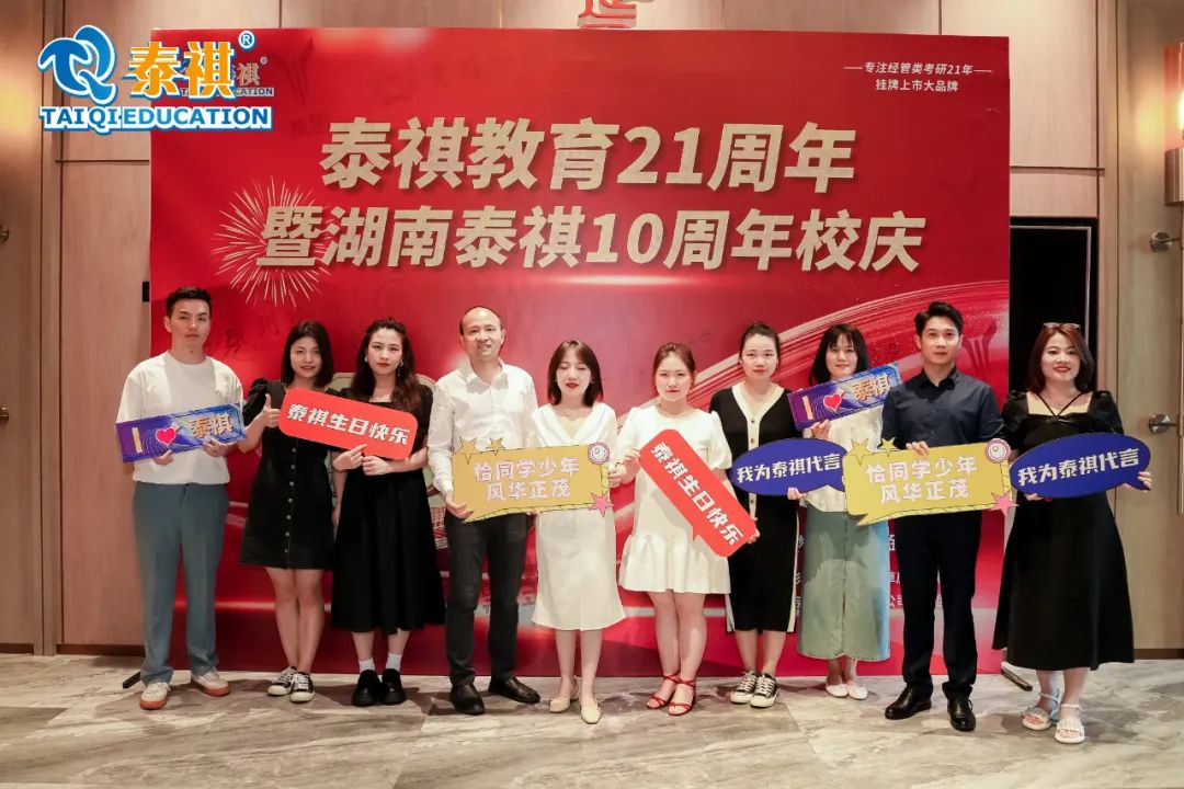 泰祺教育自2002成立以来,到今年已经走过二十一个年头,湖南泰祺自2013年至今也迎来十周岁的生日。5月21日下午五点半,泰祺湖南分校在延年神禹大酒店19楼延玺厅举办了十周年校庆活动。