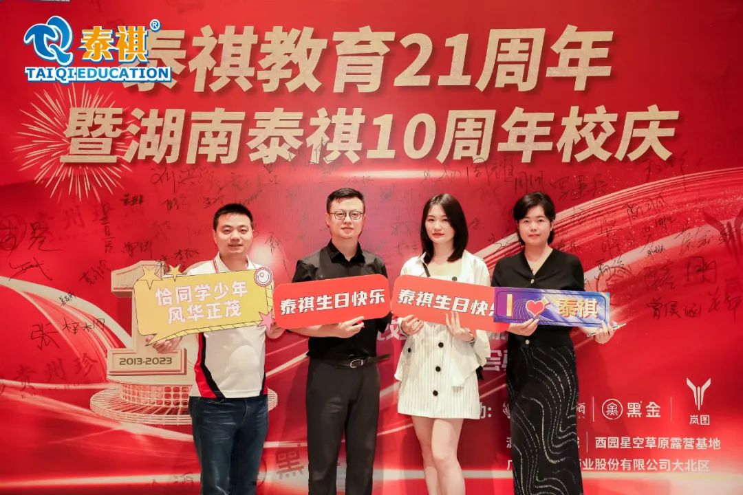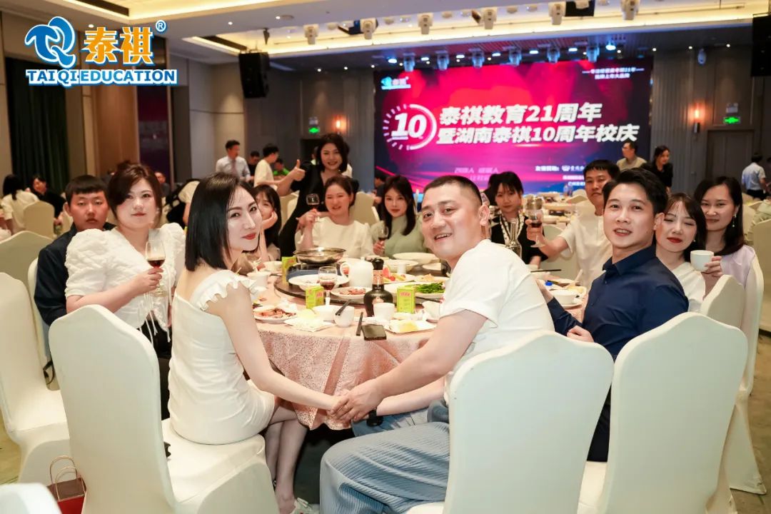 本次庆典邀请湖南各高校嘉宾、湖南泰祺13级-23级校友、赞助商嘉宾,大家欢聚一堂,觥筹交错,一起为泰祺十周年庆生,同窗重聚、回忆过往、共话未来。