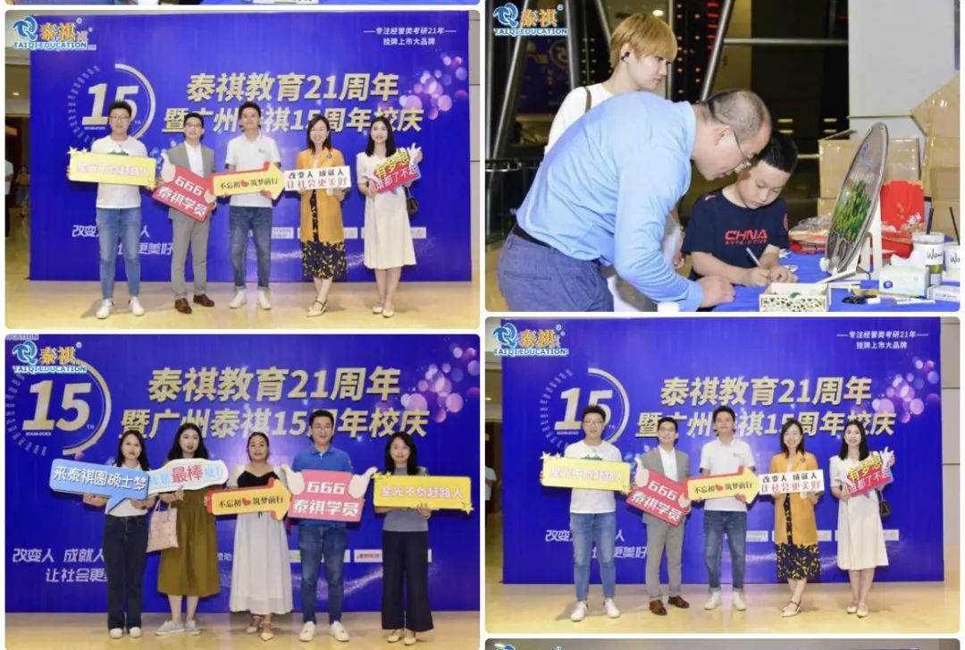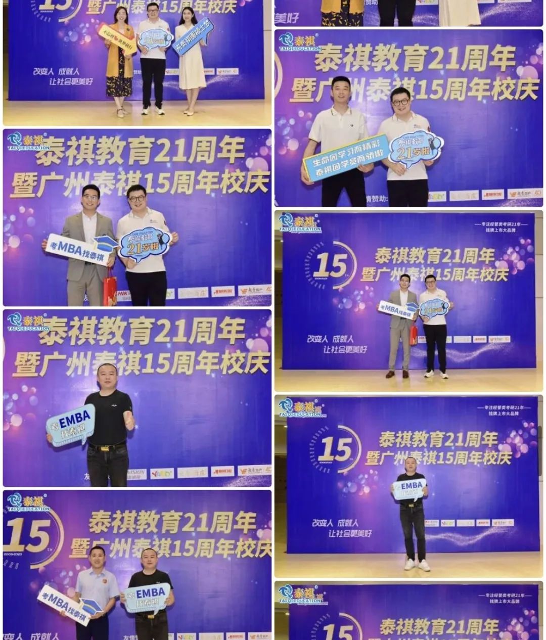 在此特别感谢中山大学管理学院专业学位办公室招生主管徐畅老师、华南理工大学工商管理学院EMBA中心主任徐瑛老师,赵若纯老师、华南理工大学经济与金融学院副院长陈镇喜老师,MBA中心主任许明姬老师,周芸竹老师、暨南大学管理学院副院长凌子山博士,MBA中心副主任王毅峰老师,EMBA中心杨舒斯老师、厦门大学EMBA华南教育中心陈志彬老师,陈叶青老师、华南师范大学MBA教育中心王向东老师、广东工业大学MBA中心招生办主任邓欣欣老师、广东外语外贸大学MBA中心招生负责人袁樱老师等高校老师代表的亲临(以上排名不分先后),一起分享泰祺教育21周年暨广州泰祺十五周年庆的喜悦。感谢泰祺学员丁硕、罗念担任本场活动主持人
